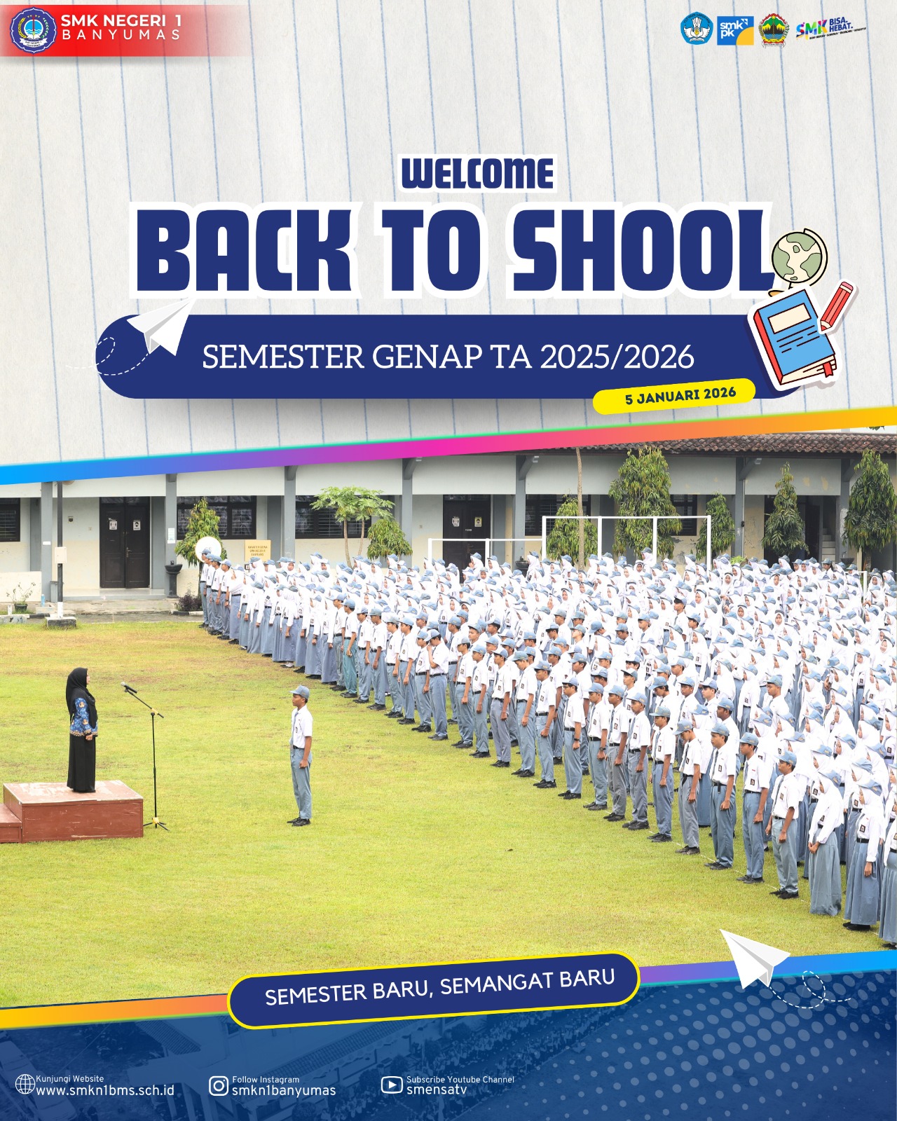 Selamat datang kembali para siswa siswi SMKN 1 Banyumas. Selamat kembali berkarya, belajar dan berproses. Tahun Baru, Semester Bar