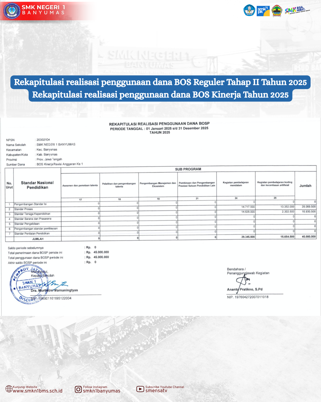 1. Laporan rekapitulasi realisasi penggunaan dana BOS Reguler Tahap II Tahun 2025 2. Laporan rekapitulasi realisasi