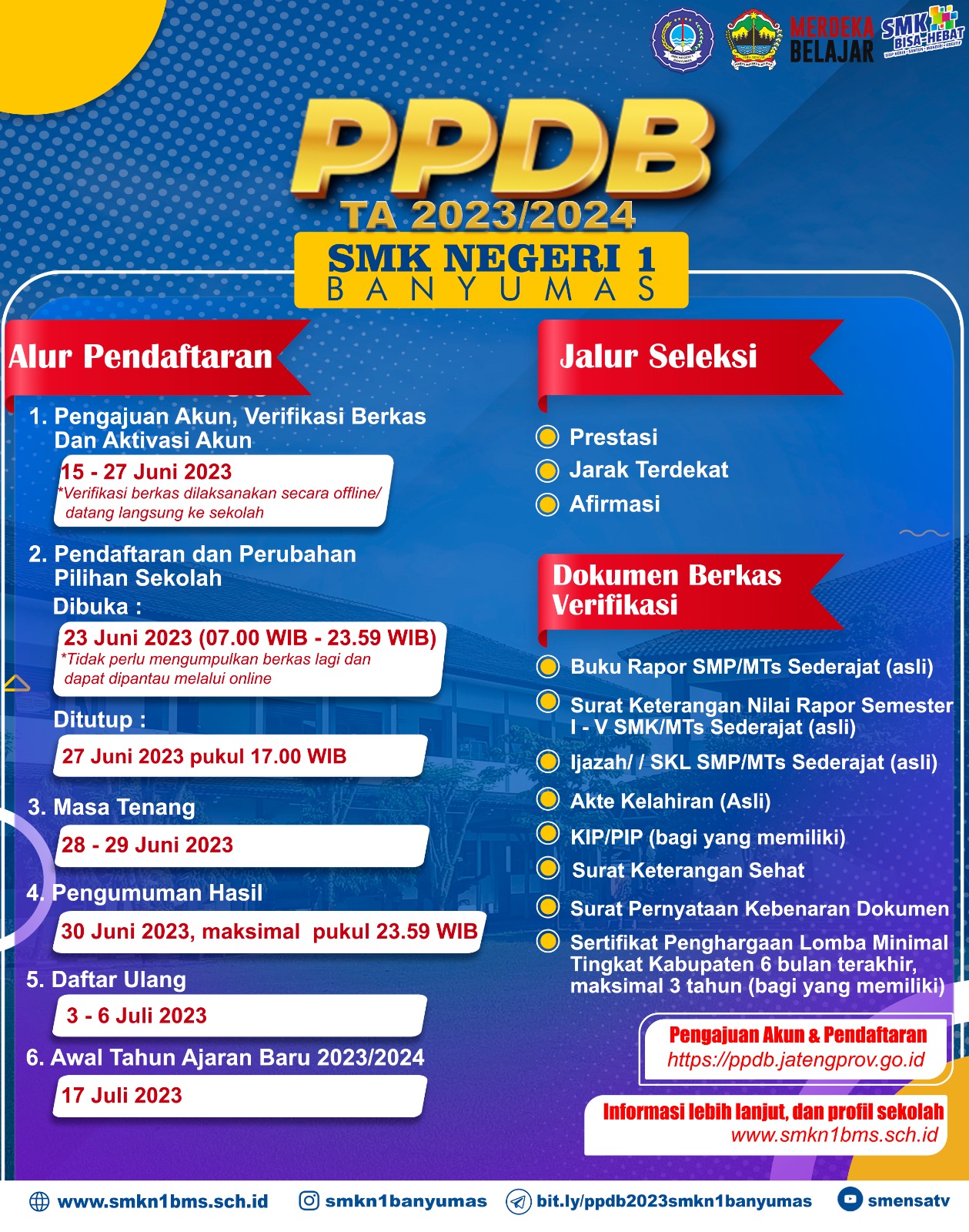 Jangan sampat kelewat, catat!!! info PPDB SMKN 1 Banyumas tahun Pelajaran 2023/2024
