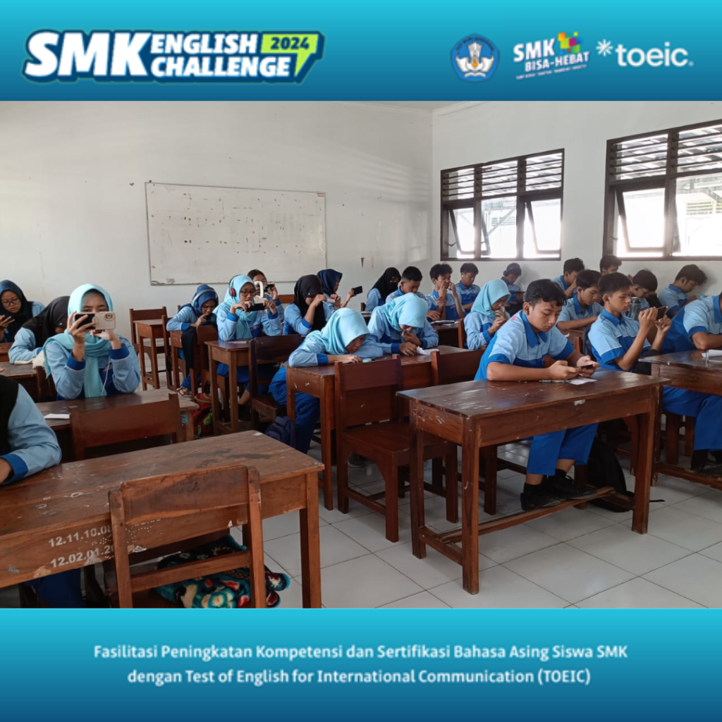 Dalam rangka meningkatkan daya saing global di tengah perkembangan era teknologi ini, Direktorat SMK bekerjasama dengan PT International Test Center kembali menyelenggarakan kegiatan fasilitasi peningkatan kompetensi dan sertifikasi Bahasa Asing siswa SMK dengan Test of English for International Communication (TOEIC). Program in bertujuan untuk meningkatkan kemampuan bahasa Inggris siswa Sekolah Menengah Kejuruan (SMK), mempersiapkan mereka untuk dapat menghadapi tantangan global, dan memberikan sertifikasi yang diakui secara internasional melalui ujian TOEIC.